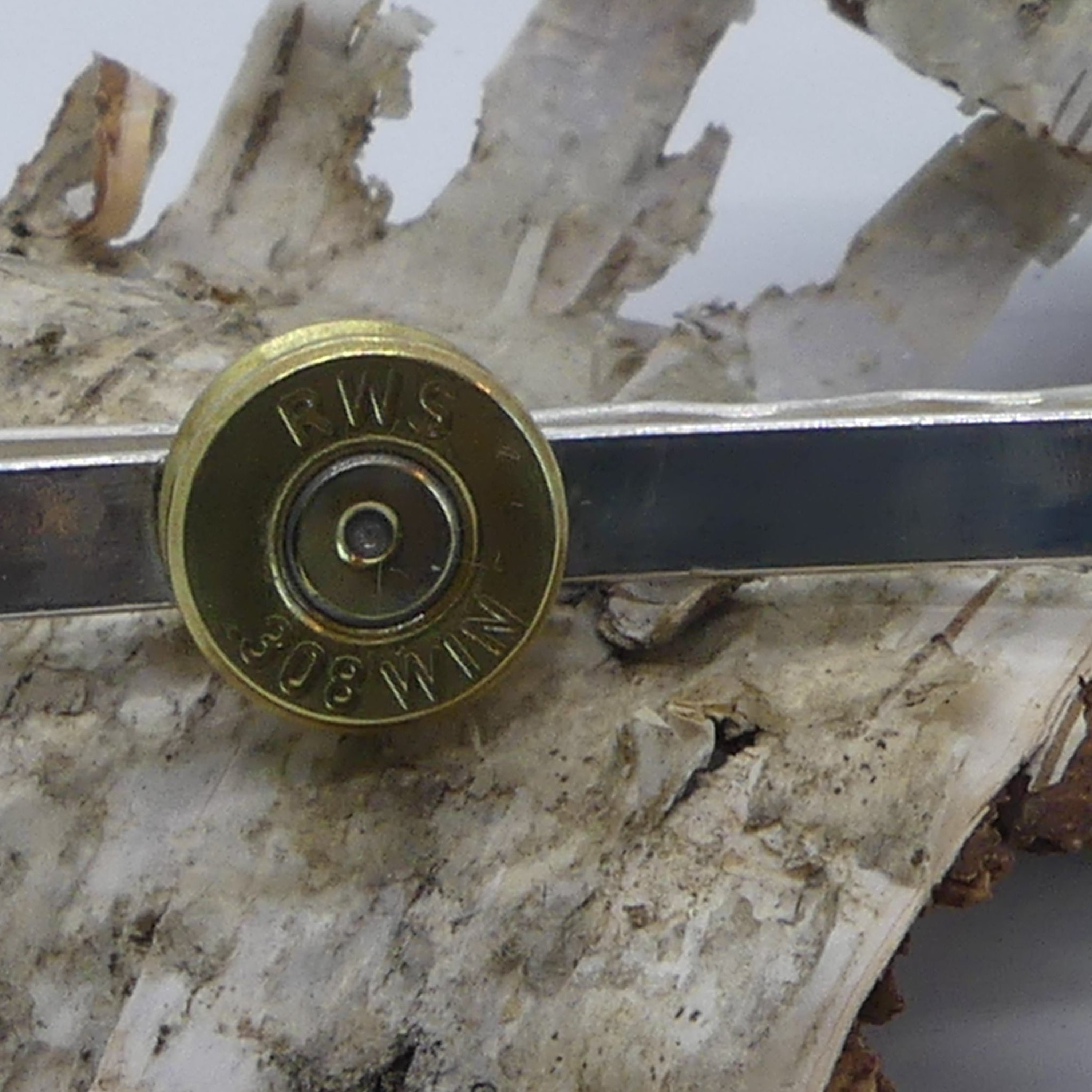 Die Krawattenklammer aus Sterlingsilber wird mit dem vergoldeten Boden deiner eigenen Patronenhülse veredelt.