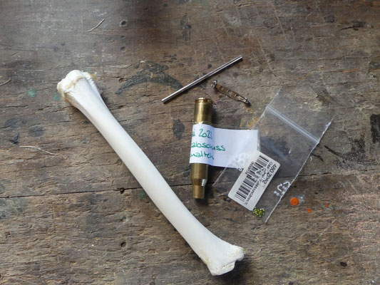 ... nein es sollte etwas ganz Besonderes werden. Sie hatte sich neben der abgeschossenen Hülse nämlich auch einen Knochen ihres ersten erlegten Rehbocks gesichert.